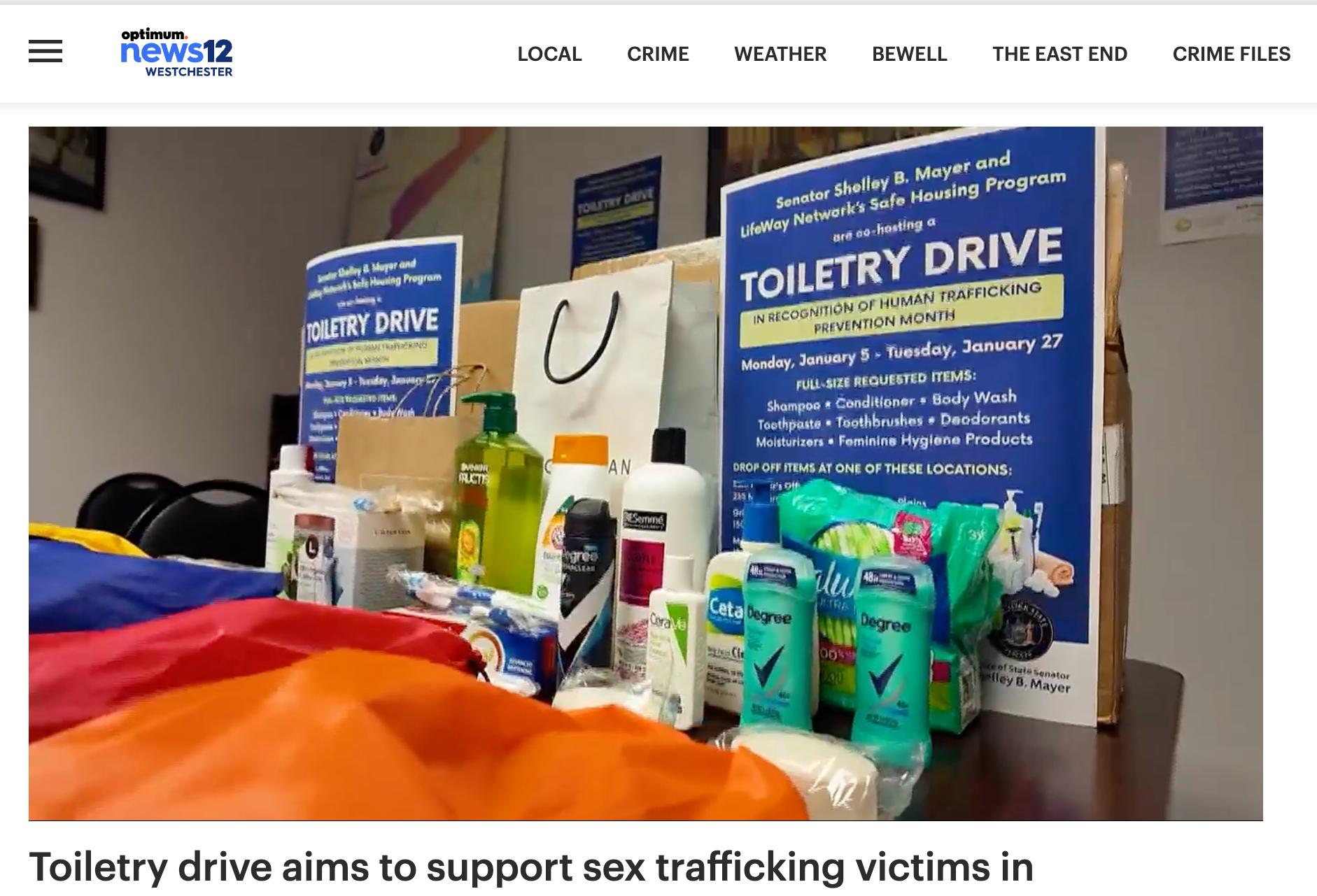 January 2025: State Sen. Shelley Mayer launched a toiletry donation drive in recognition of National Human Trafficking Prevention Month. The donations will go to Lifeway Network’s Safe Housing program. See the segment here.